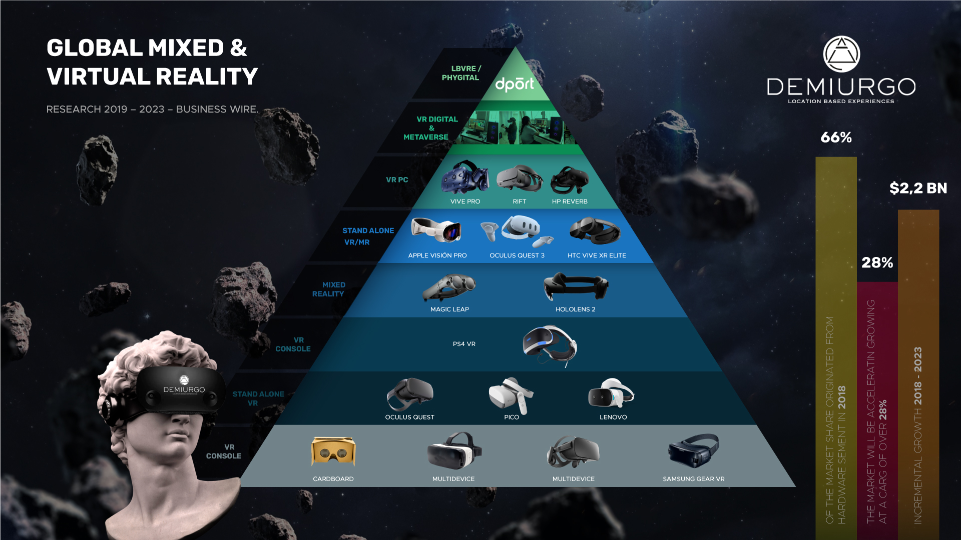 Hemos sido testigos de la evolución de los visores, desde los VR Console, cardboard VR, standalone VR, hasta los más recientes VR/MR Standalone HMD. Pero más allá de la tecnología subyacente, el futuro parece apuntar hacia la interconexión de estos dispositivos en el metaverso y entornos multiusuario location-based, gracias a plataformas como DPORT Mulitiuser LBVRE (Location Based Virtual Reality Experience) un espacio inmersivo de realidad virtual multiusuario que te permite recorrer libremente nuevos multiversos como un avatar a escala real. (Conoce más: dport.xyz)